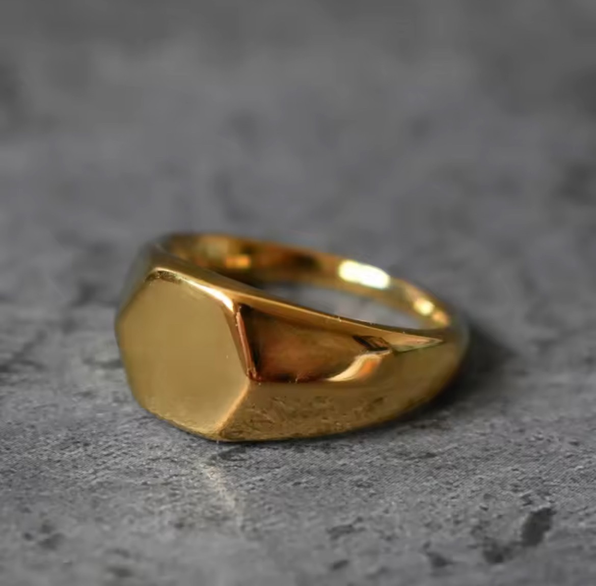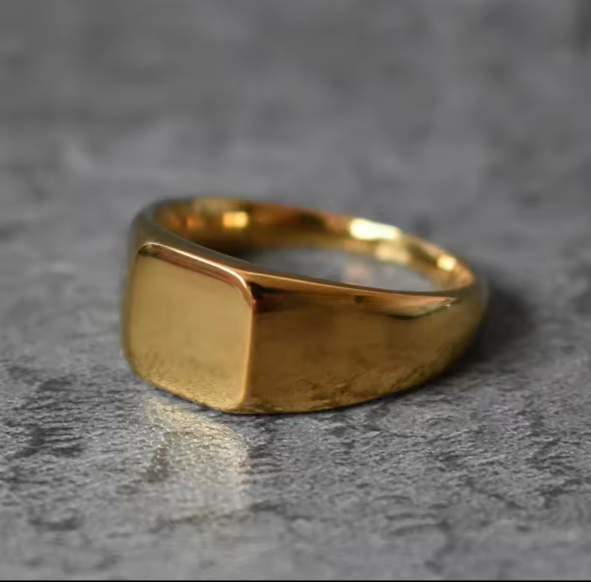 Men's Square Flat-Top Signet Ring for Men Jewelry, Stainless Steel Vintage High Polished Gold Color Round Male Jewellery Gift