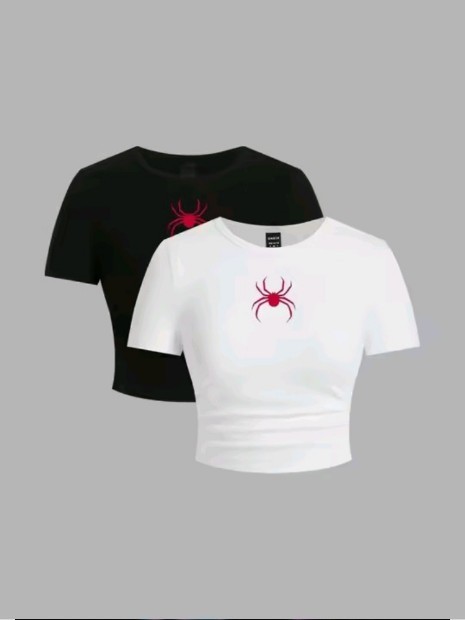 Simple Red Spider Printing Crop Tops