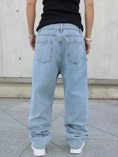 Spring Autumn Men Baggy Jeans Oversize Straight Loose Casual Denim Trousers