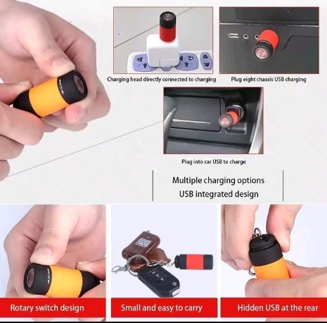 USB Rechargeable LED Multifunctional Strong Light Pocket Keychain Flashlight