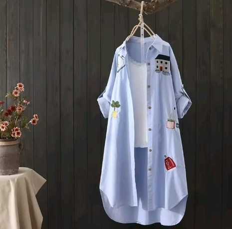 Women Cotton Embroidery Loose Long White Shirts