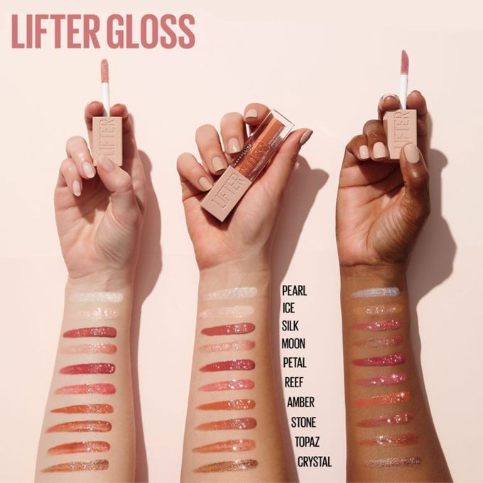 Meet Maybelline’s new next level lip gloss. Drench lips with hydrating shine for a fuller, lifted look. This formula visibly smooths lip surface and enhances lip contour with high shine. This hydrating lip gloss is available in a full range of modern shades, like Pearl, Ice, Amber, Topaz, Crystal and more. Formula with Hyaluronic Acid. Apply it for a hydrating, glossy shine and fuller look.